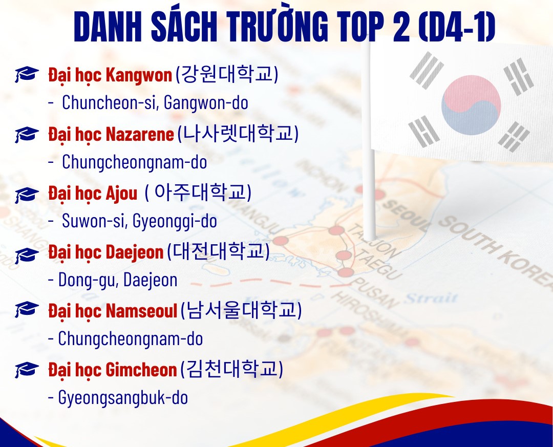 Chuyên mục: DU HỌC HÀN QUỐCDANH SÁCH CÁC TRƯỜNG TOP 2 HÀN QUỐCĐăng lúc 18, Tháng 04, 2024Danh sách các trường xếp hạng Top 2 về chương trình, chất lượng đào tạo, cơ sở vật chất đáng lựa chọn nhất mà Du học Phúc Thịnh edu gửi tới các Du học sinh Hàn Quốc