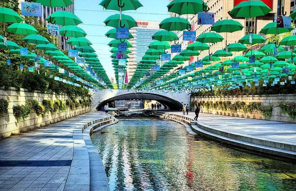 Đến trung tâm thành phố Seoul chắc chắn bạn sẽ ấn tượng, bởi nơi đây có một dòng suối tự nhiên chảy qua trung tâm, mang đến sự thơ mộng, bình yên của thành phố. Đồng thời, tại đây vào tháng 11 hằng năm thường diễn ra các lễ hội đèn lồng với quy mô lớn. Bạn không chỉ được chiêm ngưỡng cảnh quan độc đáo, mà đây còn là khoảng thời gian thư giãn và xả hơi trong chuyến vi vu Hàn Quốc.