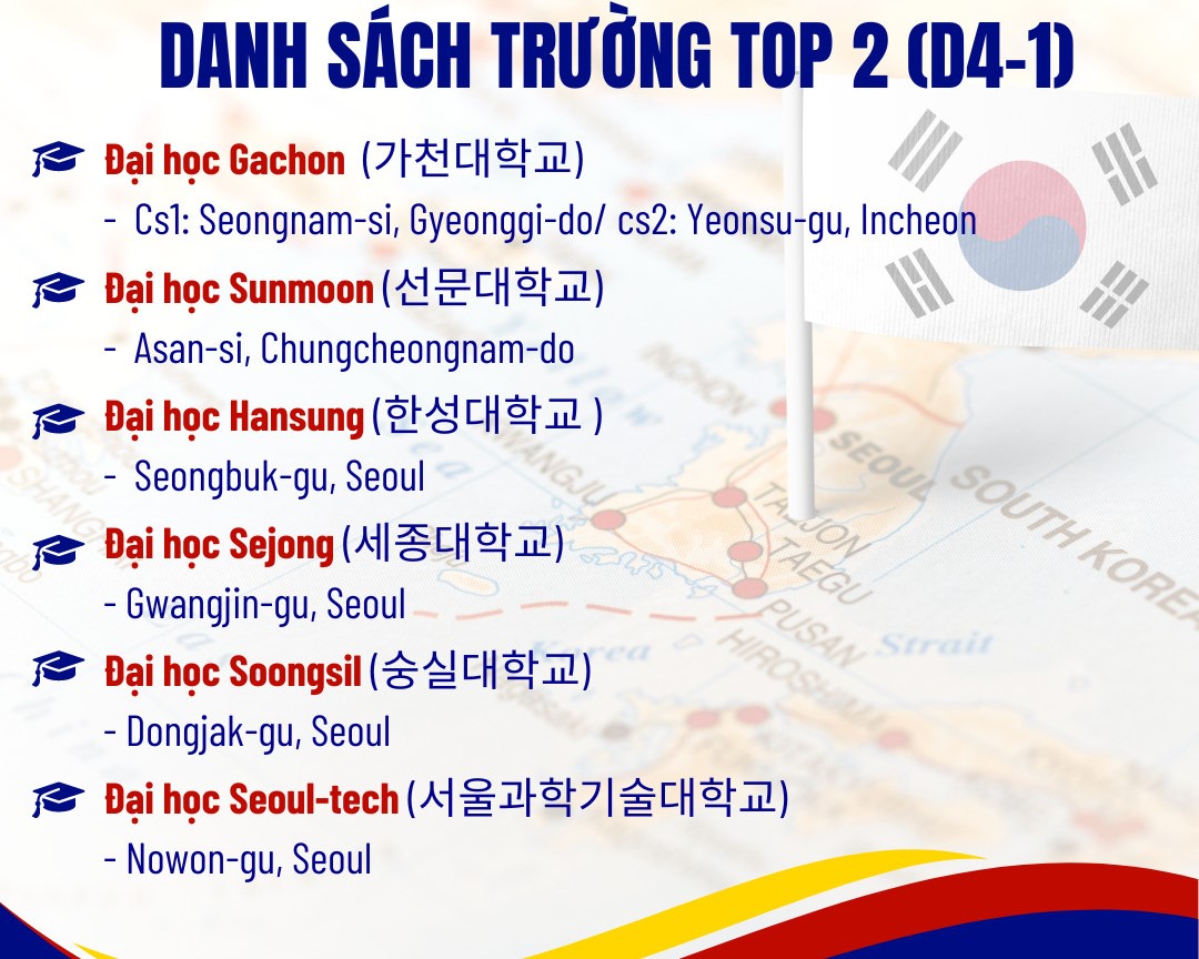 Chuyên mục: DU HỌC HÀN QUỐCDANH SÁCH CÁC TRƯỜNG TOP 2 HÀN QUỐCĐăng lúc 18, Tháng 04, 2024Danh sách các trường xếp hạng Top 2 về chương trình, chất lượng đào tạo, cơ sở vật chất đáng lựa chọn nhất mà Du học Phúc Thịnh edu gửi tới các Du học sinh Hàn Quốc