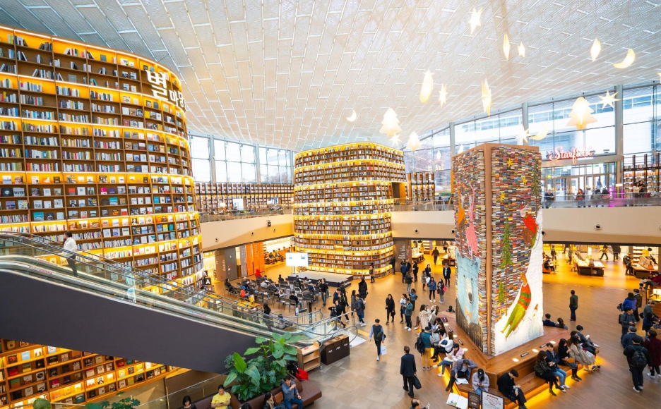 Một trong những địa điểm check-in Hàn Quốc nổi tiếng và khá đặc trưng là thư viện Starfield nằm ở thành phố Seoul. Toạ lạc tại trung tâm mua sắm Starfield COEX, với không gian rộng lớn và kệ sách khổng lồ, sẽ là một điểm check-in cực độc đáo cho giới trẻ.